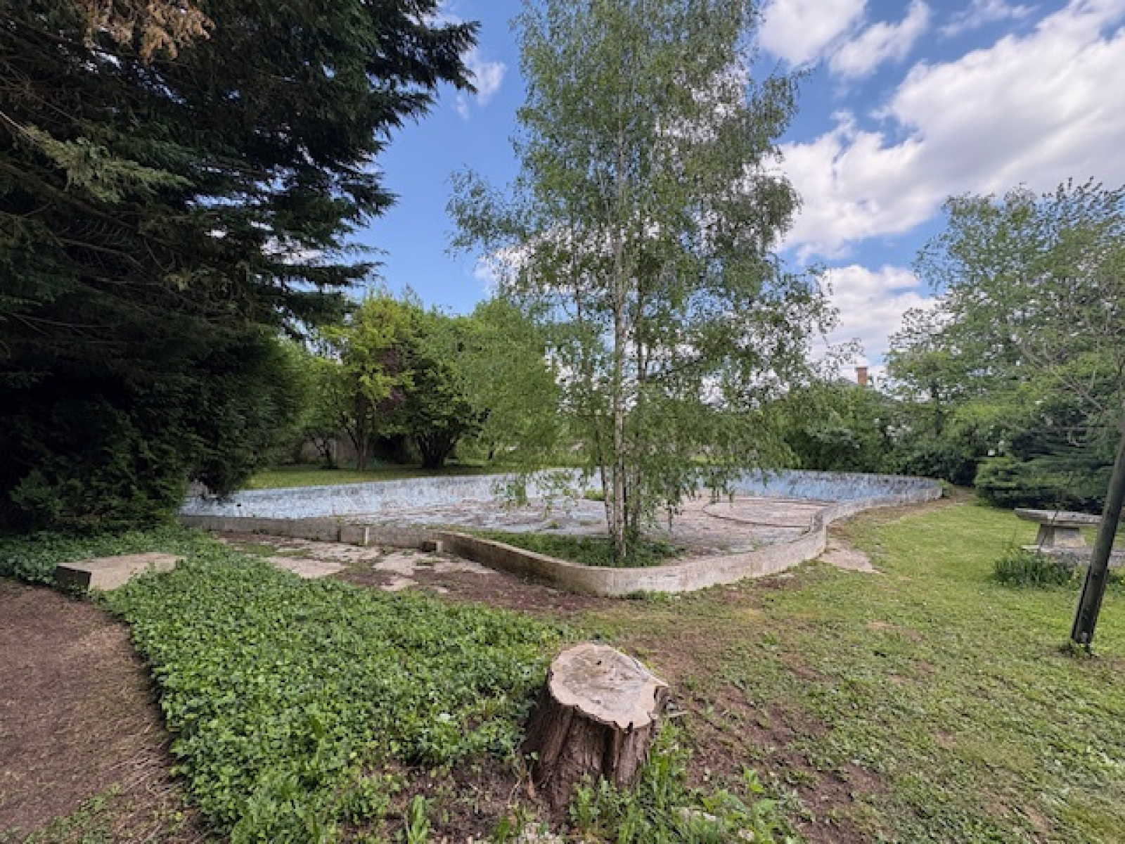 Cette propriété est sur un jardin paysagé de 2850m2, avec une partie boisée, un garage de 68m2, un appentis, et une cave.