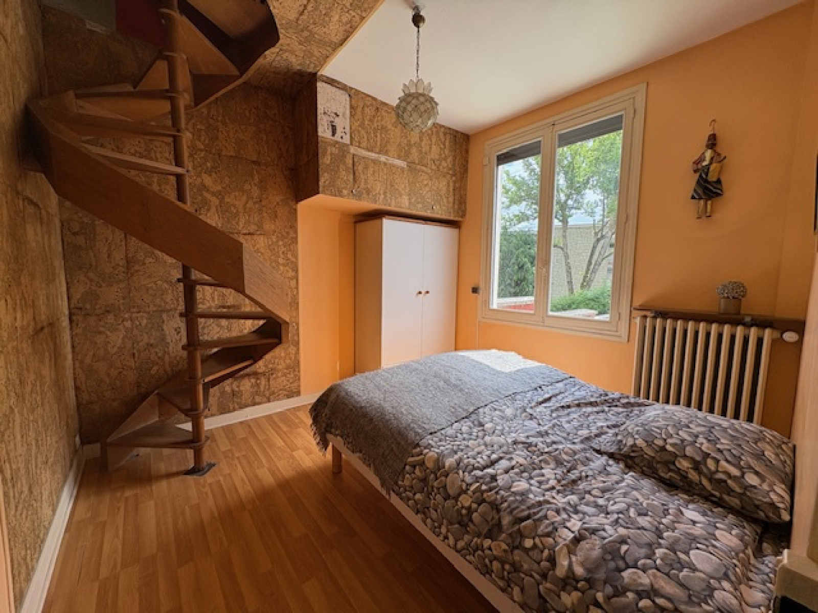 A l'étage on retrouvera une salle de bain, 2 chambres dont une donnant sur une 3ème chambres (en duplex).